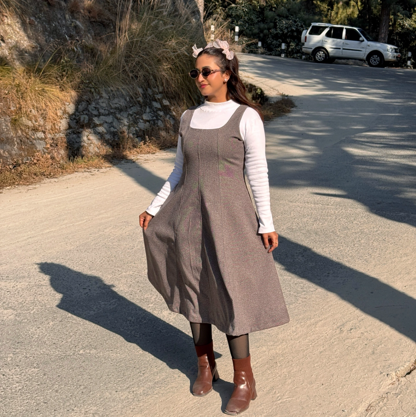 Crafted from premium wool fabric, this frock-style outer is designed to offer warmth, structure, and effortless elegance. The silhouette features a fitted bodice with a graceful A-line flare, making it flattering and comfortable for all-day wear.